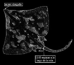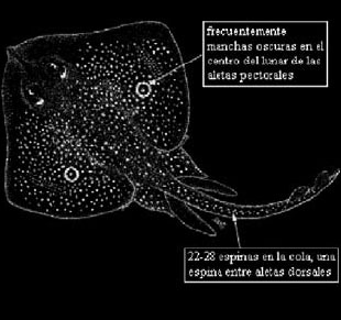 Tamaño: hasta 260 cm de largo y 83cm de ancho Estado de conservación: Considerada CERCA DE ESTAR AMENAZADA en el Mediterráneo (IUCN). Importancia pesquera: Ejemplares capturados de forma accidental en pesca de arrastre y trasmallo. |