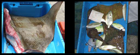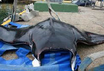 Tamaño: 190cm de largo y hasta 80cm de ancho Estado de conservación: Considerada CERCA DE ESTAR AMENAZADA en el Mediterráneo (IUCN). Importancia pesquera: Ejemplares capturados de forma accidental por redes a la deriva o palangre. Especie descartada debido a su bajo o nulo valor comercial. |