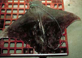 cm de ancho Estado de conservación: Considerada CERCA DE ESTAR AMENAZADA en el Mediterráneo (IUCN). Importancia pesquera: Ejemplares capturados de forma accidental por redes de trasmallo y arrastre de fondo. |