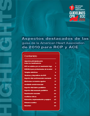 | Aspectos destacados de las guías de la American Heart Association de 2010 para RCP y ACE | Principales Cambios respecto a las recomendaciones de las Guías de 2005 |